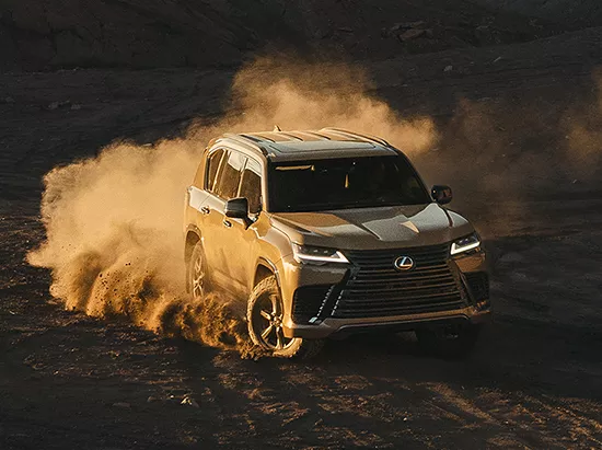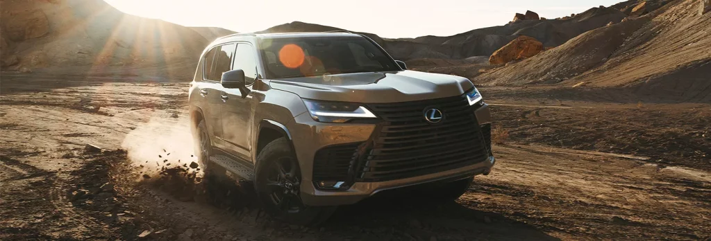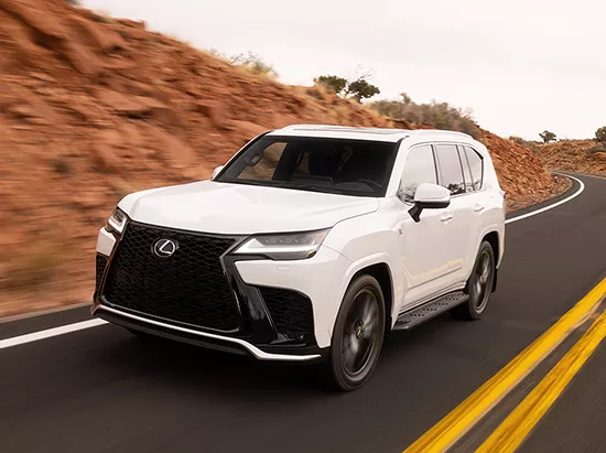 From the side, it looks a lot like a Toyota Land Cruiser (because it basically is one underneath) but Lexus adds some big-boy 22-inch rims, the largest ever on a Lexus and a futuristic rear light bar that says, “I don’t offroad but I could if I wanted to.”